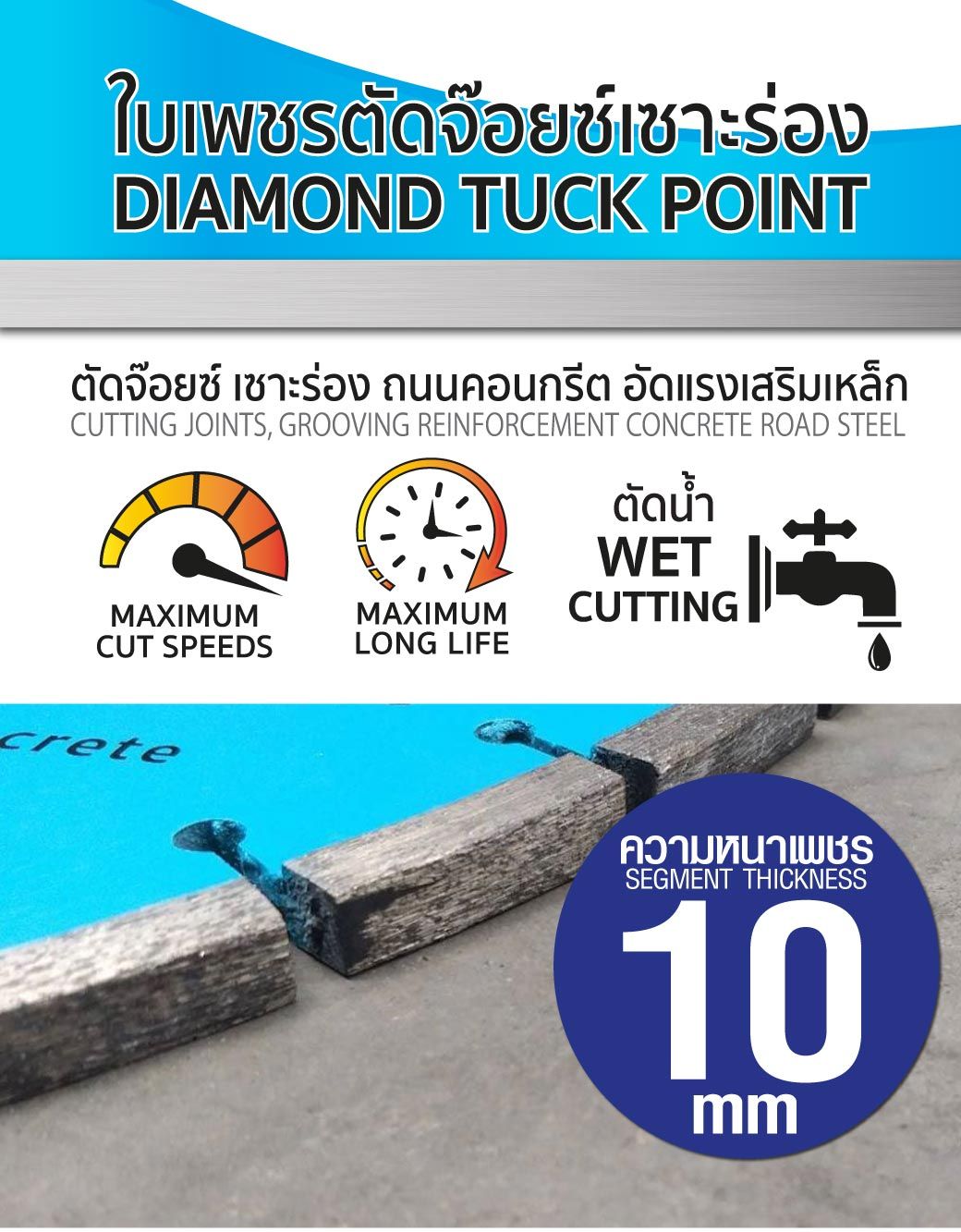 • ฟัน ผลิตจากเพชรคุณภาพสูง มีความทนทาน ตัดเข้าชิ้นงานได้อย่างรวดเร็ว ทนต่อแรงกระแทก