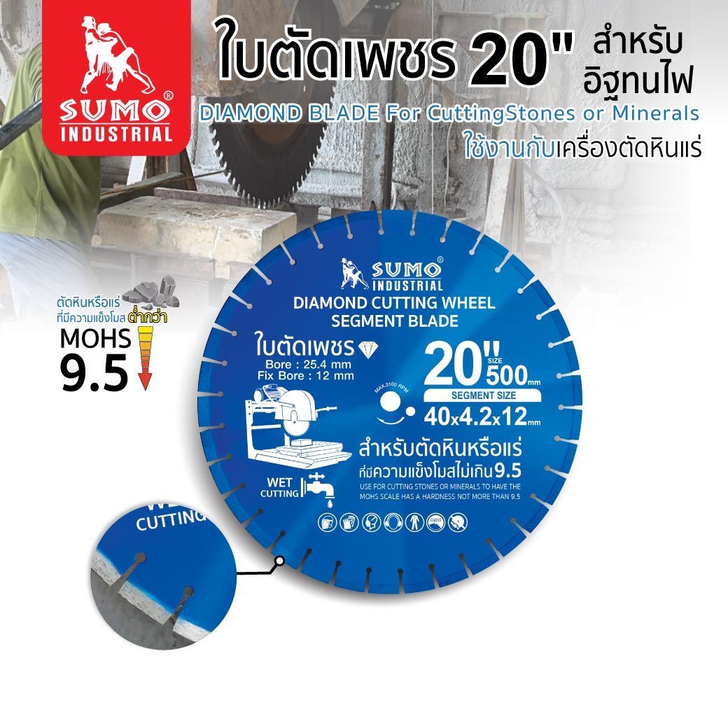 ใบตัดเพชร 20"(500x4.2x12mm) SUMO สำหรับอิฐทนไฟ