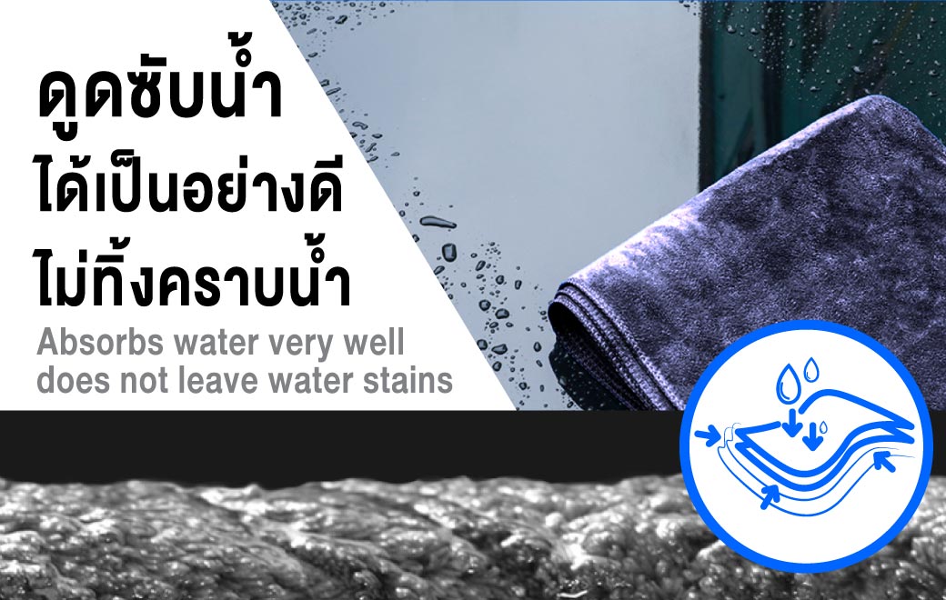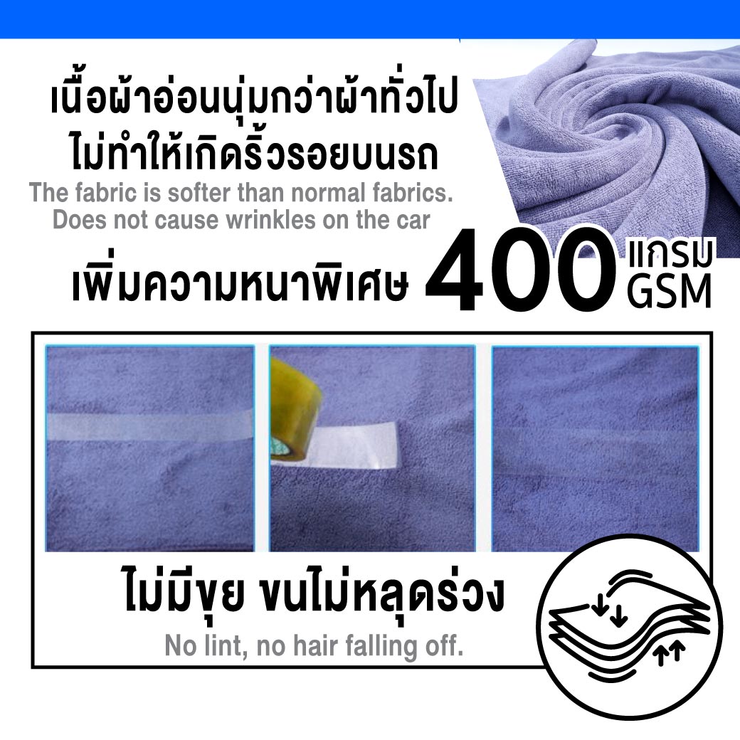 ผ้าไมโครไฟเบอร์ สำหรับคาร์แคร์  ดูดซับน้ำได้มากกว่าผ้าไมโคไฟเบอร์ทั่วไป 2เท่า แห้งเร็ว ระบายอากาศได้ดี ผืนใหญ่เหมาะกับรถเก๋งหรือรถขนากกลาง เหนียว นุ่ม ทนทานไม่ขาดง่าย