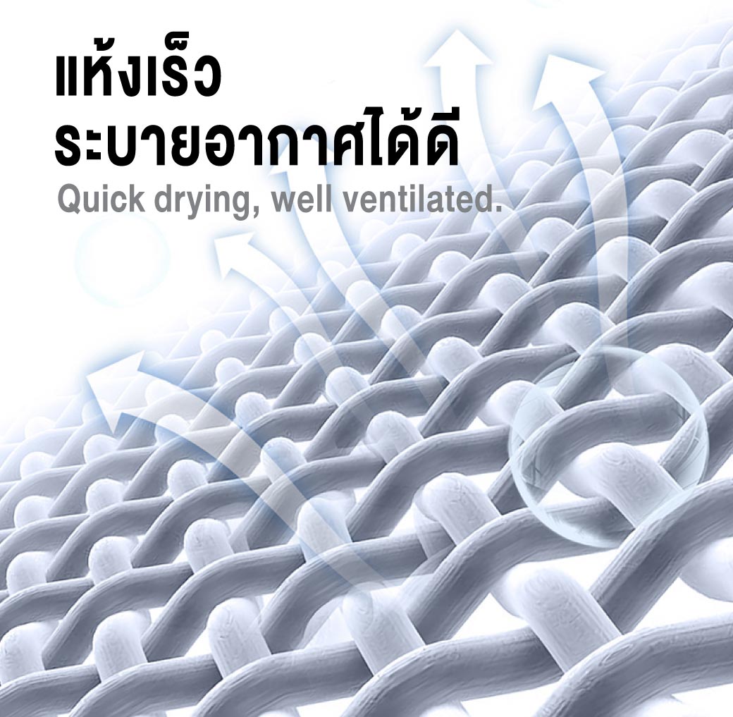 • ดูดซับน้ำสูง นุ่มสบายมีสีสัน แห้งเร็ว ระบายอากาศได้ดี