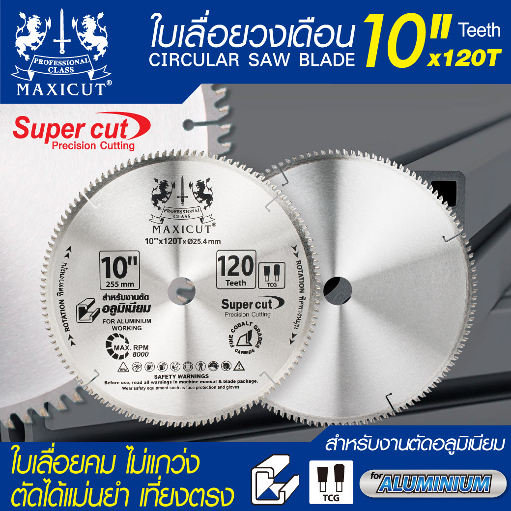 ใบเลื่อยวงเดือนตัดอลูมิเนียม 10"x120T MAXICUT สีน้ำเงิน