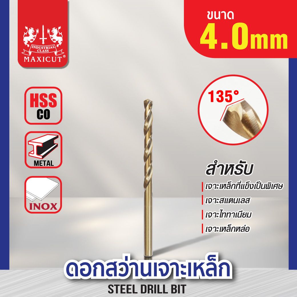 ดอกสว่านเจาะเหล็ก MAXICUT 4.0mm. (5/32") ขนาด 4.0 มม. แข็งแรงทนทาน เจาะเหล็กที่มีความหนาได้ เจาะชิ้นงานได้ง่าย ดอกสว่านเจาะสแตนเลส
