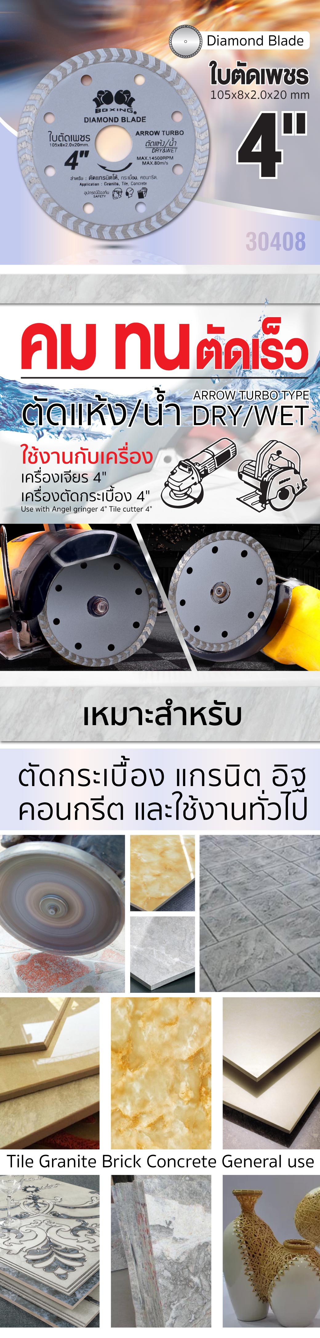คุณกำลังรีวิว:ใบตัดเพชร 4”x8 BOXING (30408) Turbo