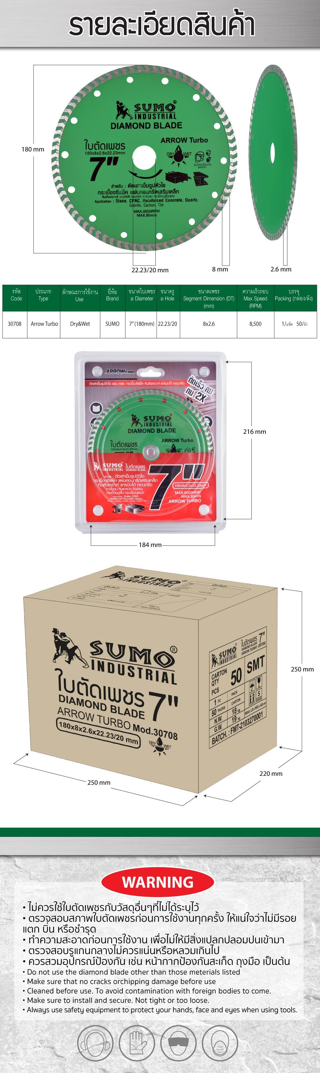 • ใบตัดเพชร 7”x8 SUMO (30708) Arrow Turbo