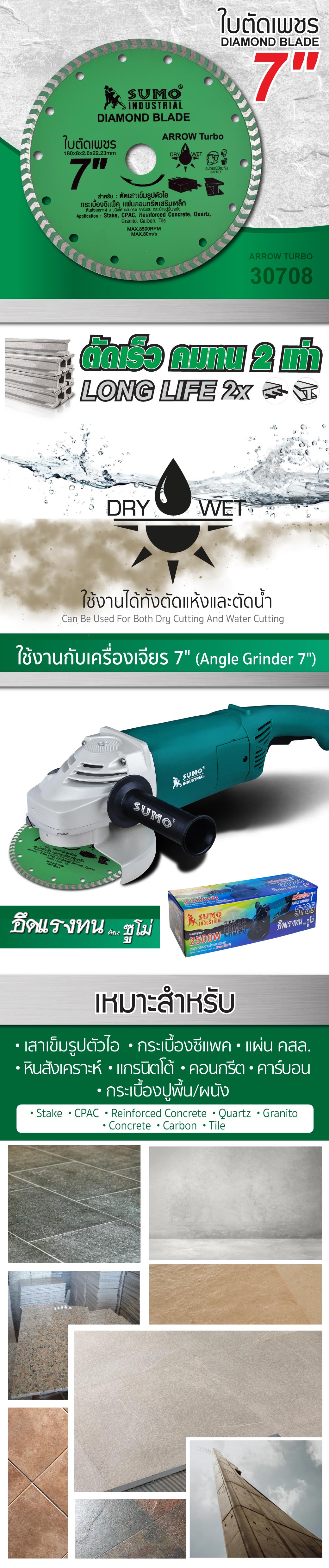 คุณกำลังรีวิว:ใบตัดเพชร 7”x8 SUMO (30708) Arrow Turbo