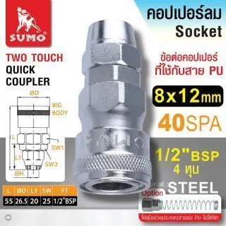 คอปเปอร์ใช้กับสายลม PU 8x12mm. (40 SPT) 1/2" BSP 4หุน