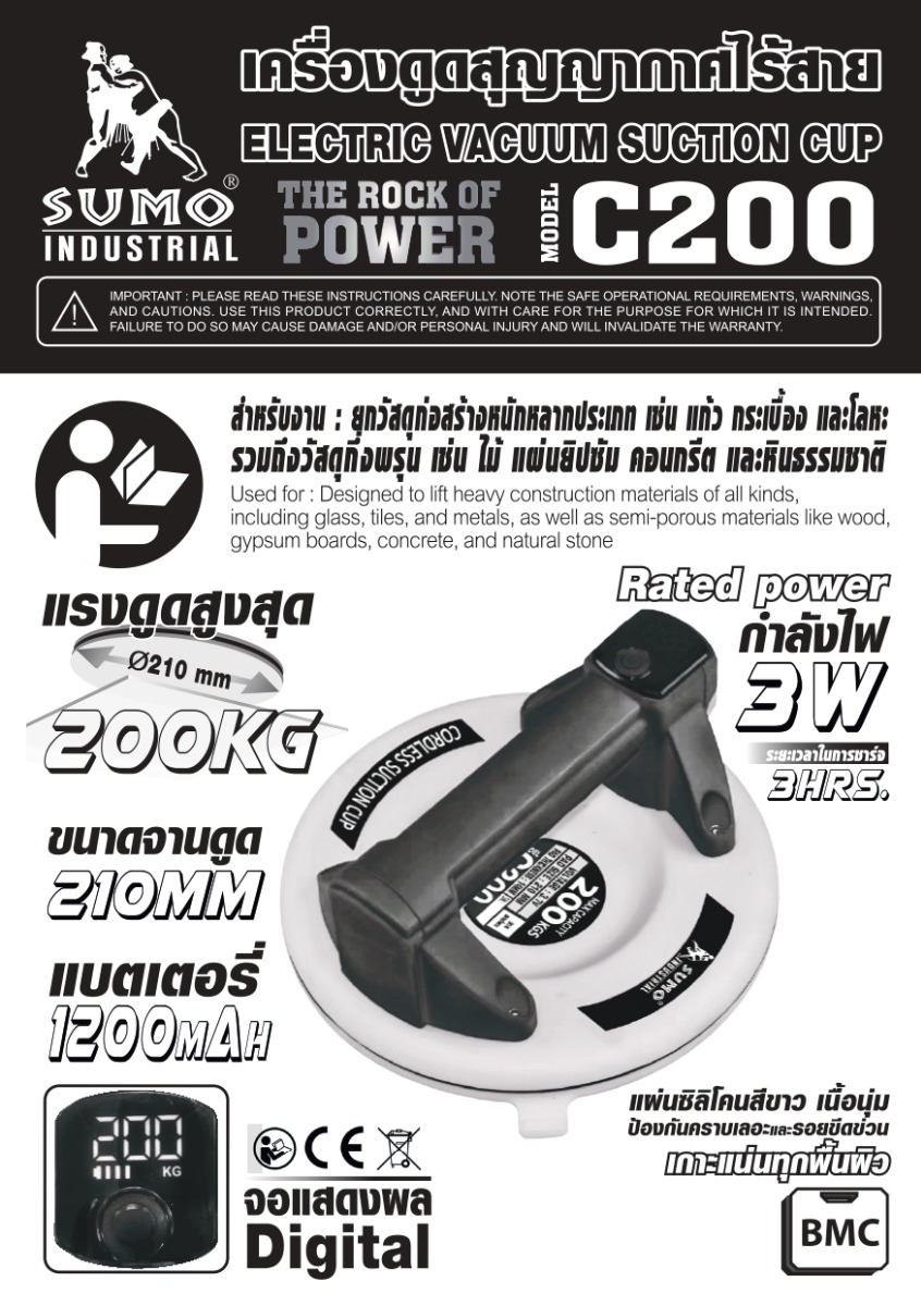 เครื่องดูดสูญญากาศไร้สาย รุ่น C200 SUMO แรงดูด 200 กก.