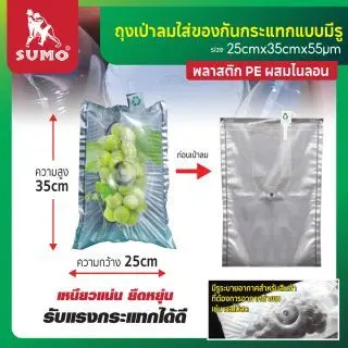• ที่สูบลมมือ ใช้งานได้กับทั้ง พลาสติกกันกระแทก SUMO ประเภท I, L, U, Q, และถุงกันกระแทกเป่าลม หรือลูกโป่งทั่วไป