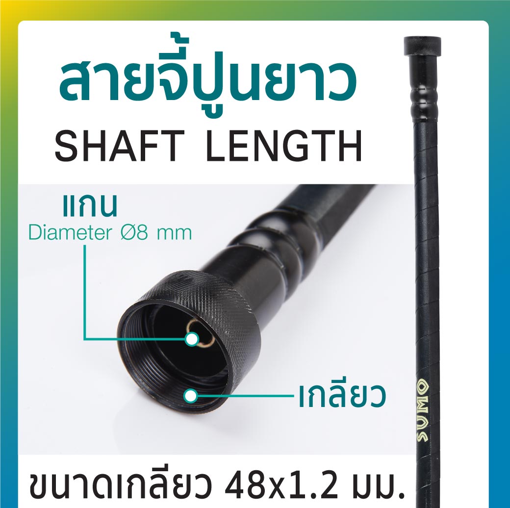 สายจี้ปูน 35 มม. ยาว 1.5 เมตร รุ่น 913515 SUMO ใช้ได้กับเครื่องจี้ปูนรุ่น 9127 ขนาดเกลียว 48x1.2 มม. แกน Diameter Ø8mm