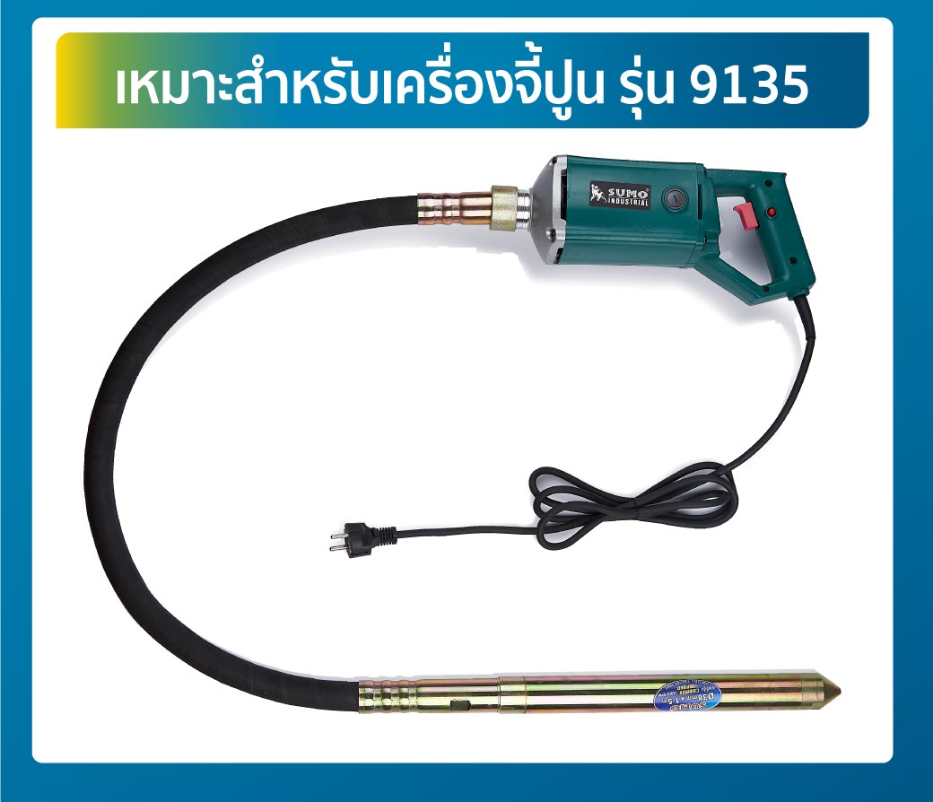 • สายจี้ปูน 38 มม. ยาว 1.5 เมตร สำหรับเครื่องจี้ปูนรุ่น 9135 SUMO สำหรับการไล่ฟองอากาศในปูน เหมาะกับการก่อสร้างทุกประเภทที่ใช้ปูนและต้องการความประณีตเพื่อช่วยไล่ฟองอากาศในการเชทตัวของปูน